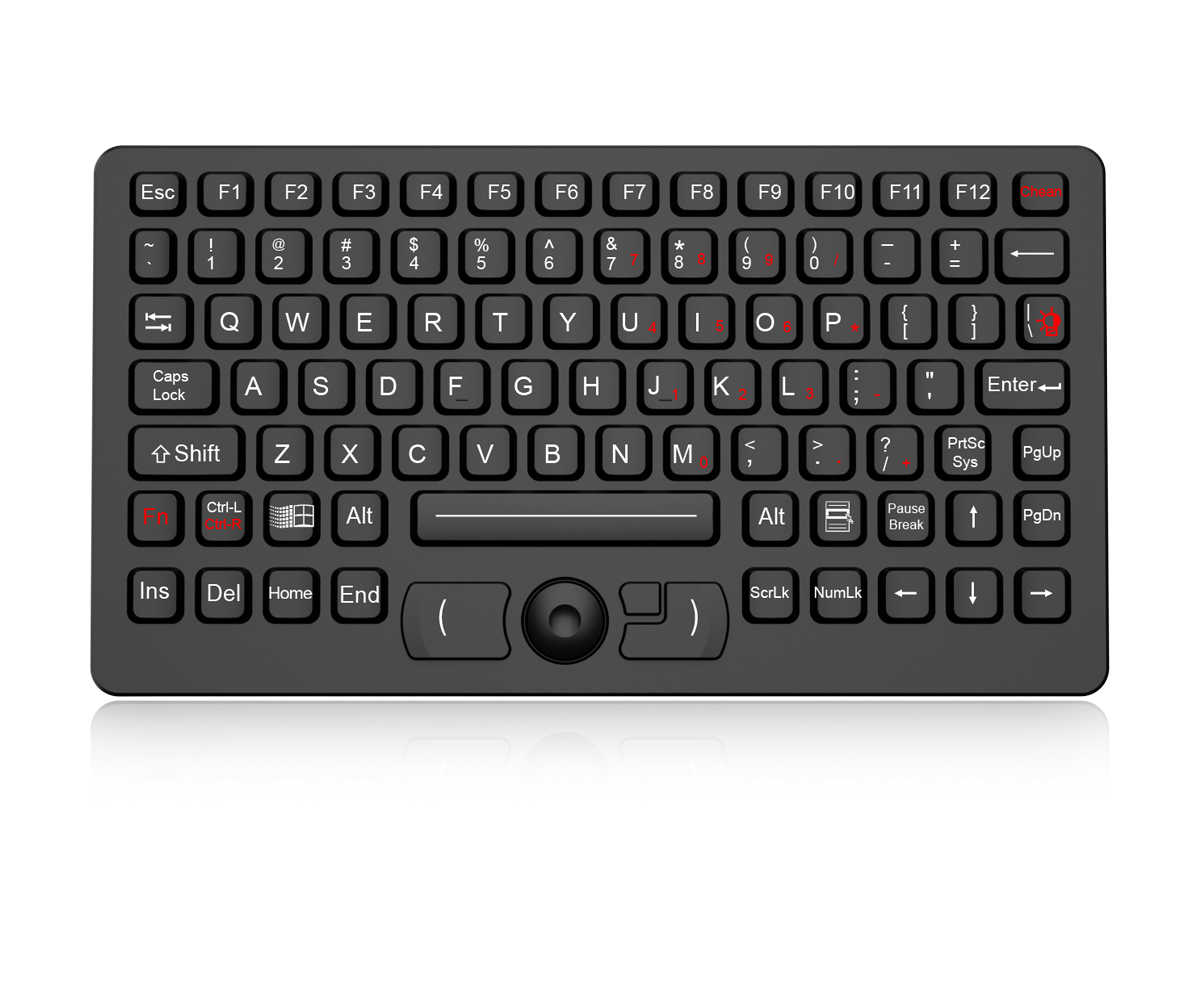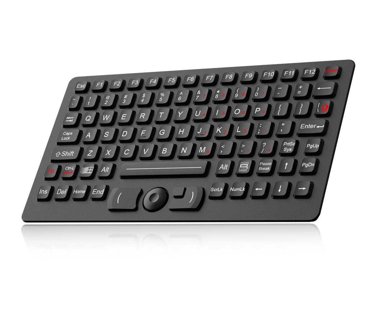 DESCRIPTION: 90 keys IP65 dynamic sealed and ruggedized silicone rubber military keyboard with full keyboard functionalities with a Force Sensing Resistor pointing device for fast and accurate cursor position, 12 FN keys (F1, F2...F11, F12) are on top line for easy operation, with military PCB with carbon-on-gold key switch technology with long stroke (1.50mm) with extremely good tactile feeling for fast and accurate data input without any noise, with durable coating & antimicrobial keyboard surface withstand to most chemicals and liquids under harsh environment, FN + CLEAN combination key to lock/disable the keyboard for easy cleaning without needing to take away the keyboard from PC, top panel mounting solution,with backlight included(red/white optional). EMC approval ensures that this model can coexist with other sensitive equipment without causing interference. Military level, designed to meet MIL-STD-461G (EMC, EMI, EMS, ESD) and MIL-STD-810H (high and low wide temperature, low pressure, humidity, vibration, shock, temperature shock, rain, dust, salt mist, fungus, solar radiation etc.), as well as the critical military standards in these 10 aspects: reliability, safety, maintainability, testability, supportability, environmental adaptability, stability, compatibility, consistency, and continuity. Dimensions: 281.0mm x 152.5mm (L x W )