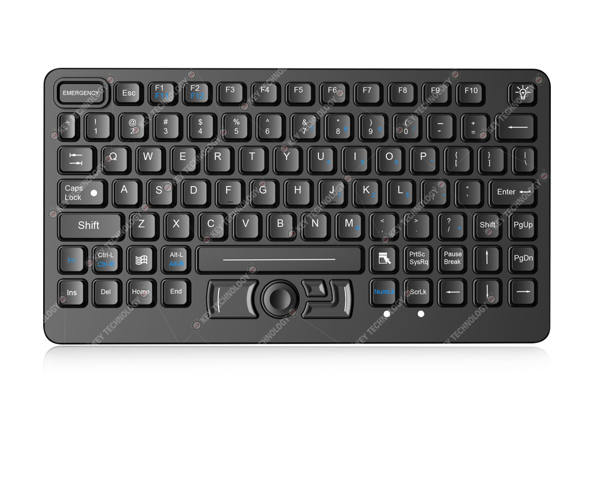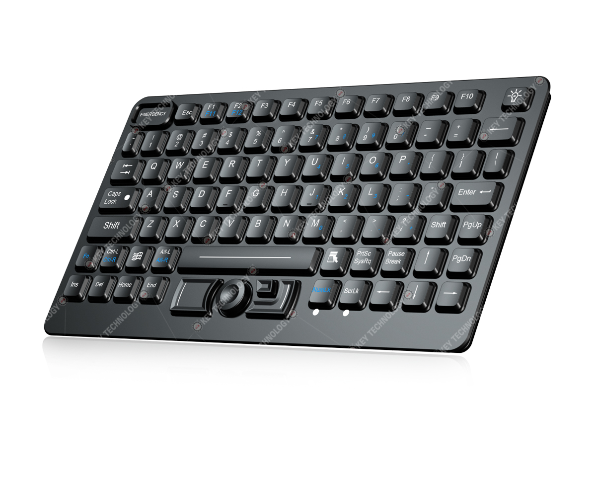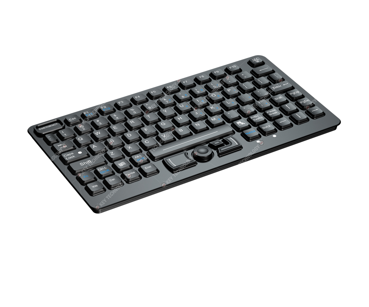 DESCRIPTION: 89 keys IP65 dynamic sealed and durable embedded silicone rubber military keyboard with a Force Sensing Resistor pointing device for fast and accurate cursor position, with built-in military grade PCB, 12 FN keys (F1, F2...F11, F12) are on top line for easy operation, with carbon-on-gold key switch technology with key stroke (1.40mm) with extremely good tactile feeling for fast and accurate data input without any noise, with durable coating & antimicrobial keyboard surface withstand to most chemicals and liquids under harsh environment, top panel mounting solution, yellow backlight included, USB interface. Designed to meet MIL-STD-461G (EMC, EMI, EMS, ESD) and MIL-STD-810H (high and low wide temperature, low pressure, humidity, vibration, shock, temperature shock, rain, dust, salt mist, fungus, solar radiation etc.), as well as the critical military standards in these 10 aspects: reliability, safety, maintainability, testability, supportability, environmental adaptability, stability, compatibility, consistency, and continuity. DIMENSION: 282.4mm x 153.6mm (L x W)