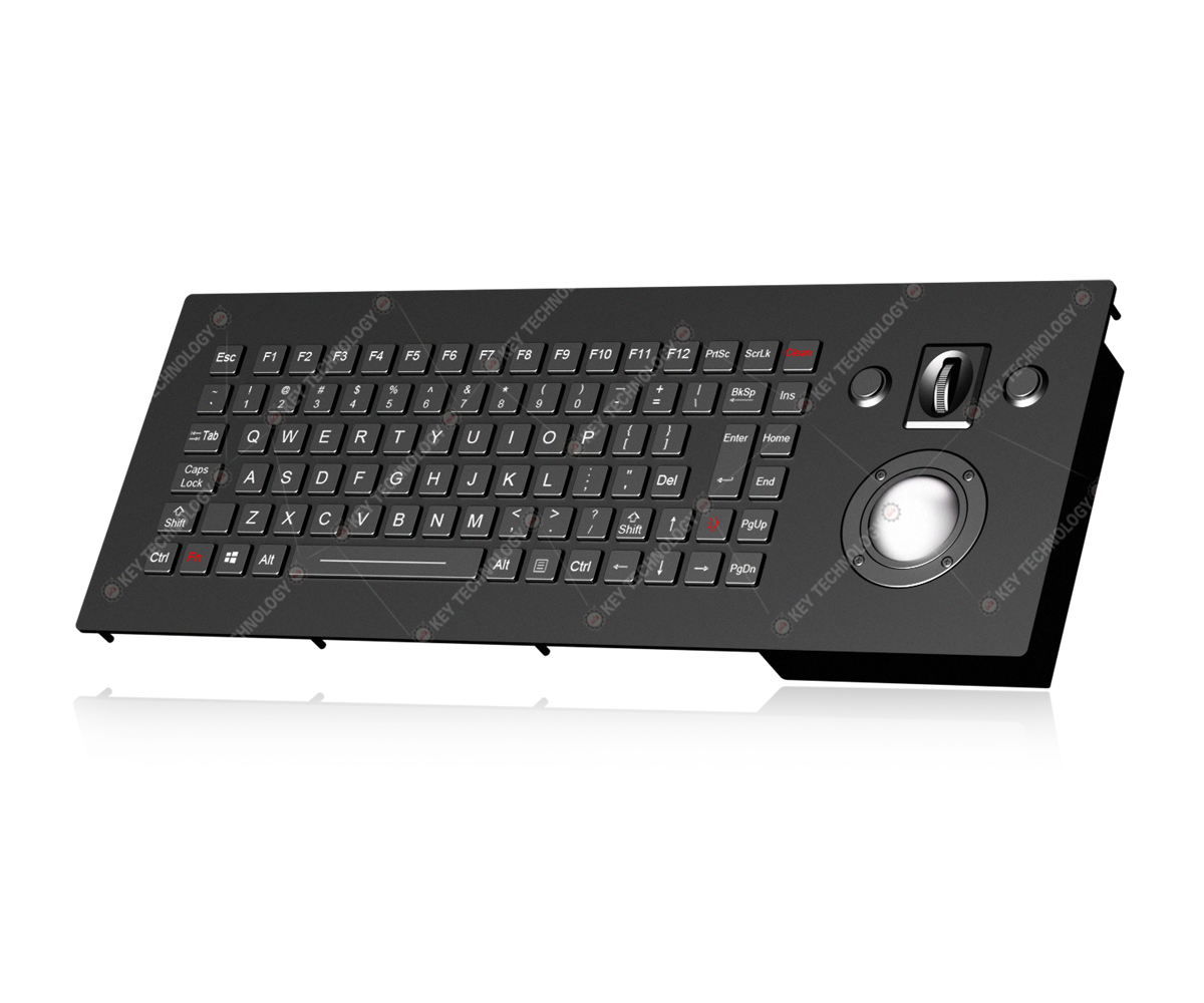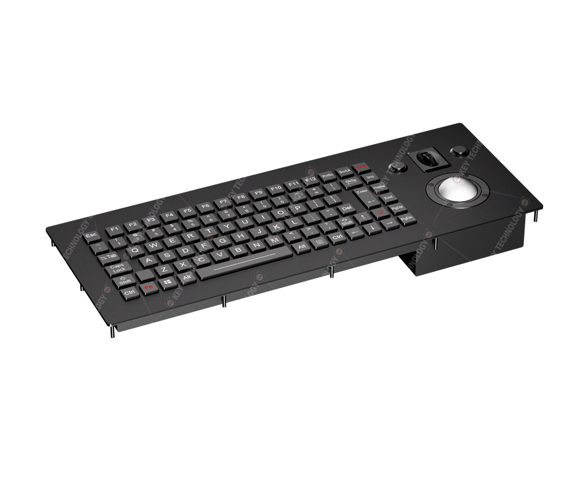 DESCRIPTION: 91 keys (Including 2 mouse buttons) IP65 dynamic sealed and rugged compact chiclet military keyboard with durable polymer keys. With IP65 38.0mm anti-vibration removable optical trackball with 800DPI for fast and accurate cursor movement.2 sealed mouse buttons designed for right & left clicking, as well as one scroll wheel in the middle for scrolling up and down. 12 function keys F1, F2, ... F12 are on the top line of keyboard. It is made of Stainless steel front plate + PC keycaps + military grade PCB, Carbon-on-gold key switch technology with stroke(1.20mm±0.10mm) with extremely good tactile feeling for fast and accurate data input without any noise, FN +CLEAN combination keys to lock/disable keyboard for easy cleaning without taking away the keyboard from PC. Adjustable white backlight included.Top panel with thread bolts for top panel mounting. Top panel with high quality durable black titanium plating. It is good for outdoor application with direct rain and very harsh environments with humidity,much dynamic water, oil, dirt, salt mist etc. Designed to meet MIL-STD-461G (EMC, EMI, EMS, ESD) and MIL-STD-810H (high and low wide temperature, low pressure, humidity, vibration,shock, temperature shock, rain,dust, salt mist, fungus, solar radiation etc.), as well as the critical military standards in these 10 aspects: reliability, safety,maintainability, testability, supportability, environmental adaptability, stability, compatibility, consistency and continuity. Dimensions: 410.0mm x 154.0mm (front panel)