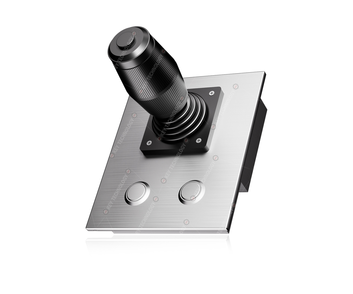 Description Download DESCRIPTION: IP65 ruggedized joystick with stainless steel plate and 2 sealed stainless steel mouse buttons (optional) for right and left clicking, the whole electronic controllers protected and shielded by stainless steel housing. The joystick provides users with a 3-axis joystick function, and can control the output of X (left and right) and Y axis (front and rear) by moving the handle in any direction by (25 ° ± 2 °); and surely control the Z axis output by rotating (40 ° ± 3 °). Mouse function or joystick function optional.With one button on the top of the joystick (2 buttons optional), it can be set as left mouse button or right button before ex-factory. USB interface, top panel mounted solution with threaded bolts. Dimension: 100.0mm x 116.0mm x 41.5mm (L x W x H)